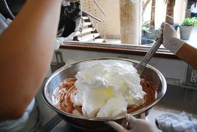 ガナッシュができたら、生クリ-ムとメレンゲをあわせます。