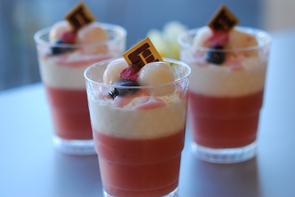 さくら餡で作った水ようかんに生クリームを