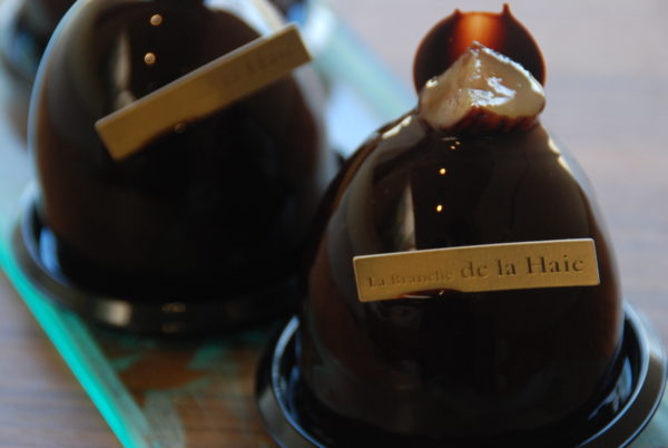 サクサクのクッキーの上にチョコクリーム、生クリーム、