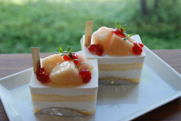 桃のケーキが出ていますのでぜひご賞味ください♪