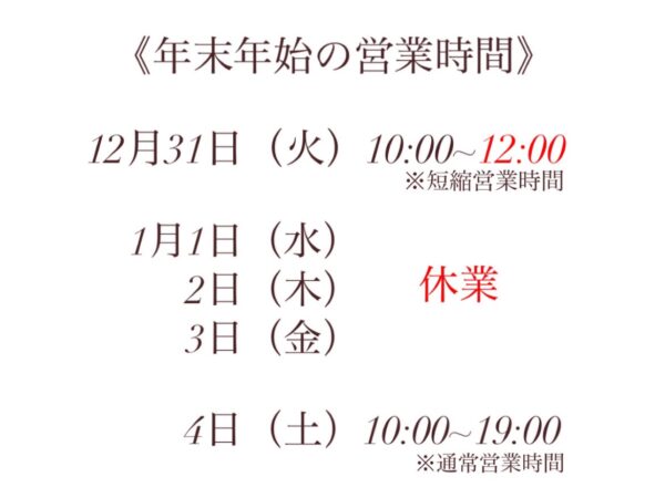 本日は年末年始の営業についてお知らせします!!